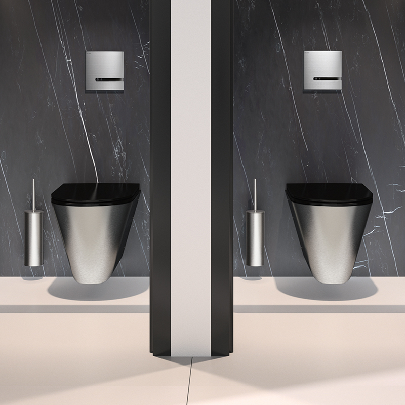 חורים שנקדחו מראש לקיבוע מושב האסלה. מסופק עם מכסי מחסום מנירוסטה כשהוא מותקן ללא מכסה מושב האסלה.